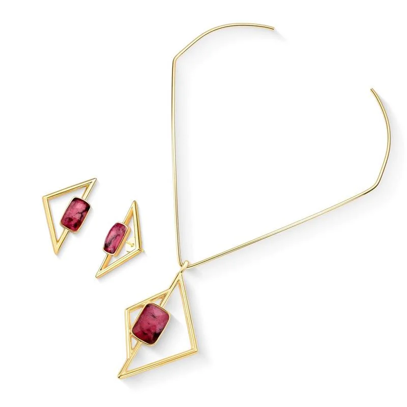 O Conjunto Coleção Radiante é a fusão perfeita entre o clássico e o contemporâneo. Brincos elegantes e colar choker ganham protagonismo com pedras naturais facetadas em cortes retangulares, que refletem a luz com intensidade sofisticada e realçam cada traço do design.
